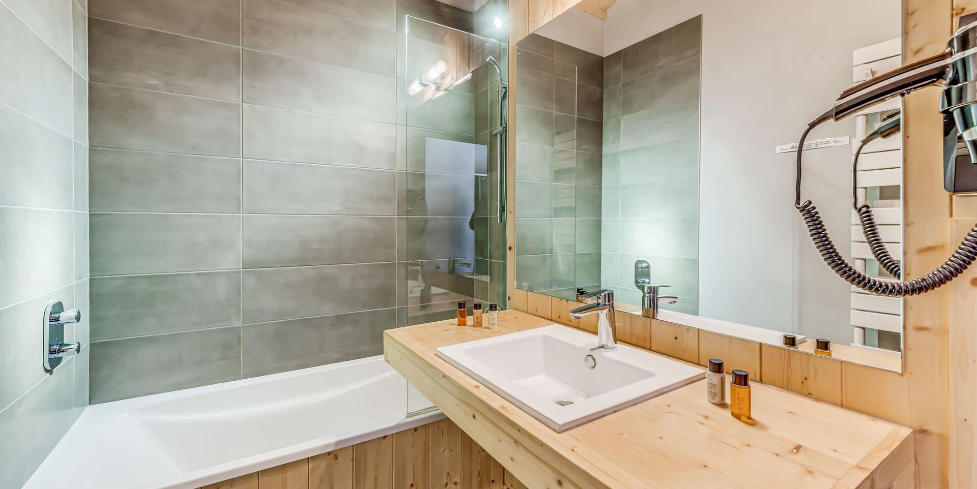 Salle de bains avec baignoire - Meuble vasque - Radiateur Sèche serviettes