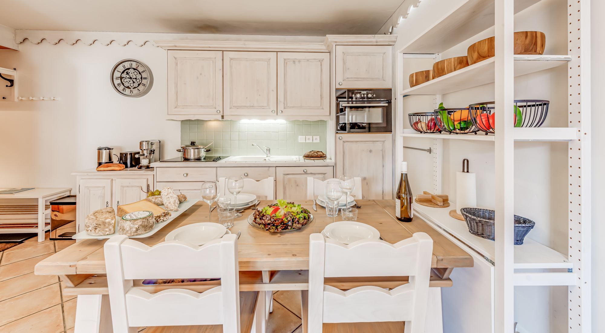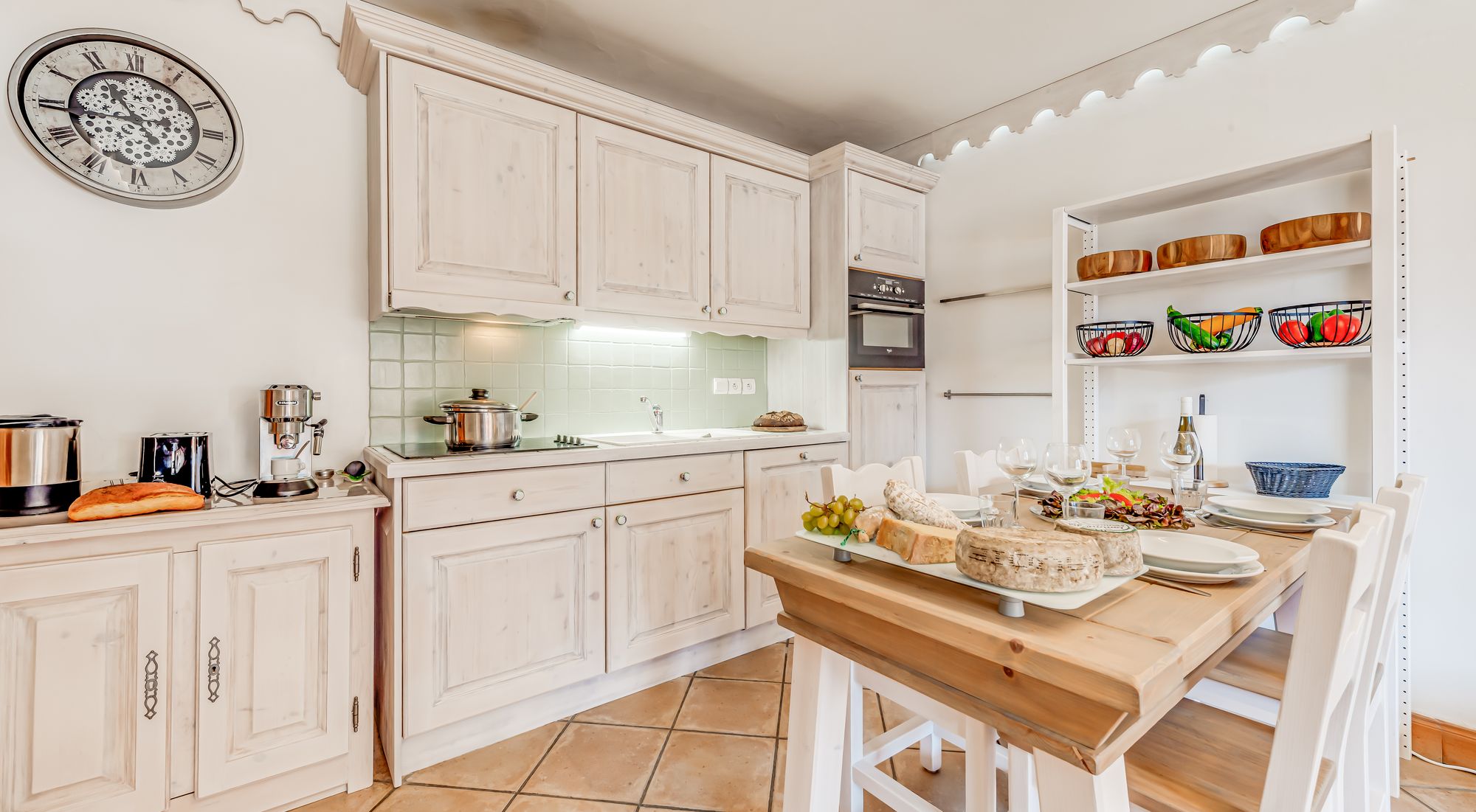 - Cuisine ouverte sur le séjour entièrement équipée (plaques de cuisson, combi four micro-ondes, réfrigérateur, lave-vaisselle, etc)