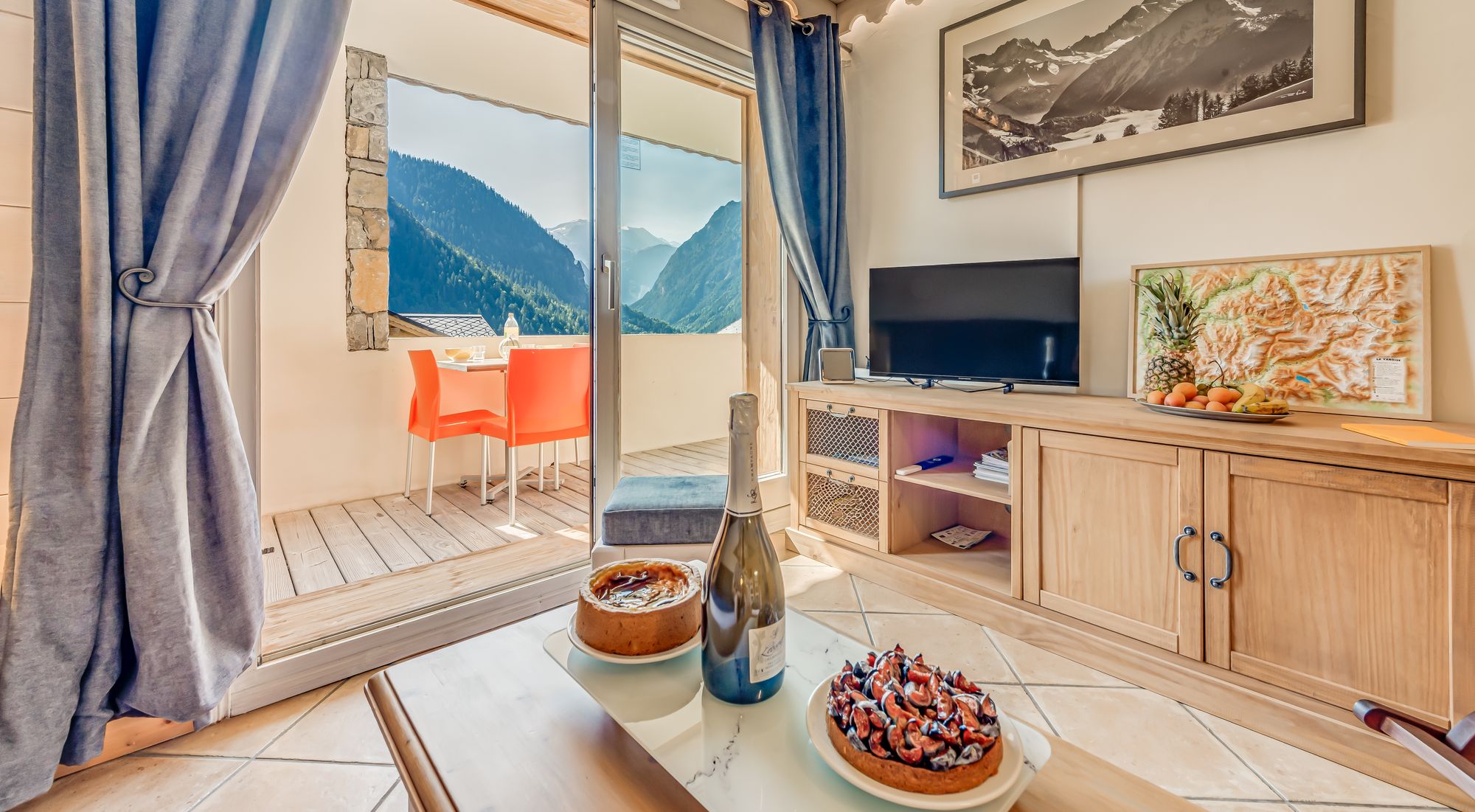 donnant sur terrasse SUD avec très belle vue sur la vallée de Pralognan et le village de Champagny.