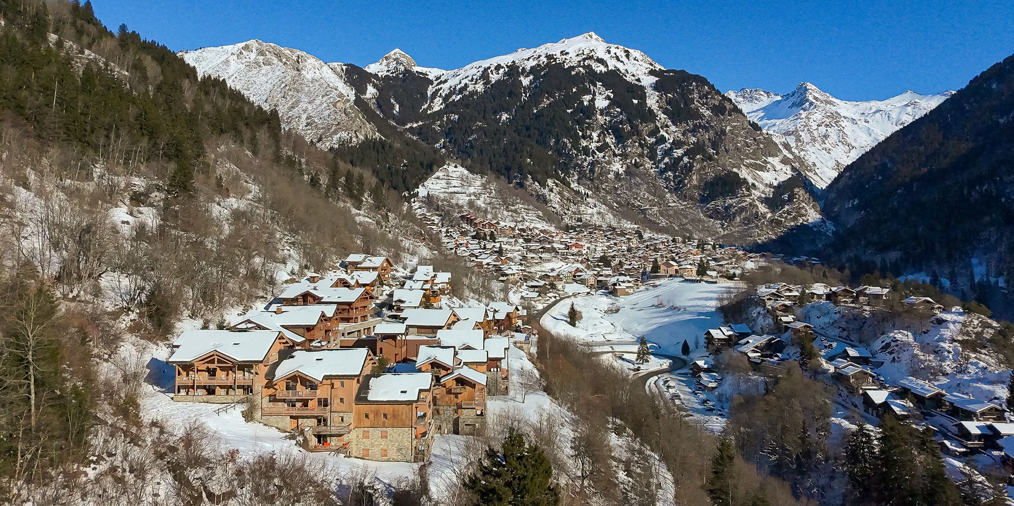 La résidence « Les Alpages de Champagny » est un hameau résidentiel confortable situé à l’entrée du village, composé de 6 grands chalets construits en pleine nature. Exposée plein sud, elle offre un point de vue splendide sur le massif de la VANOISE et sur les pistes de Courchevel.