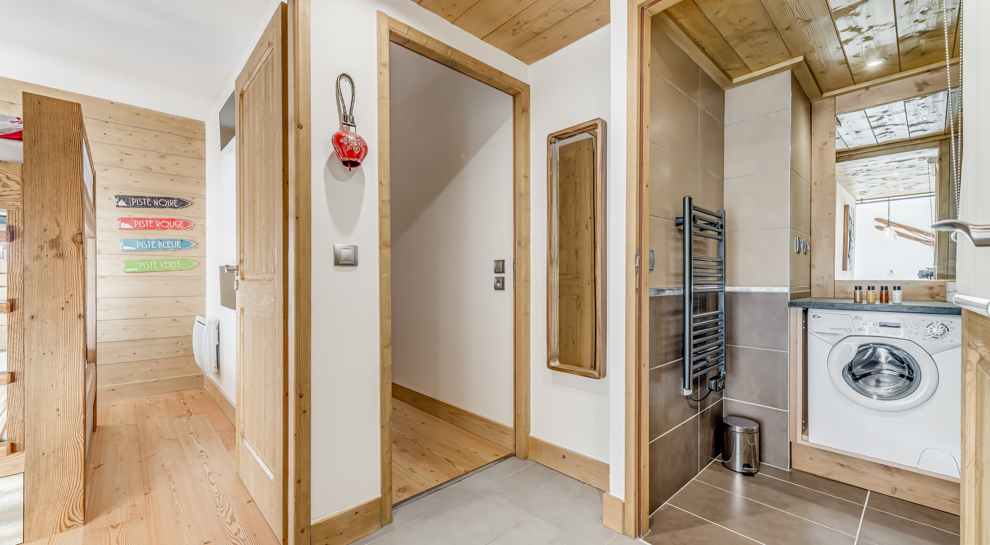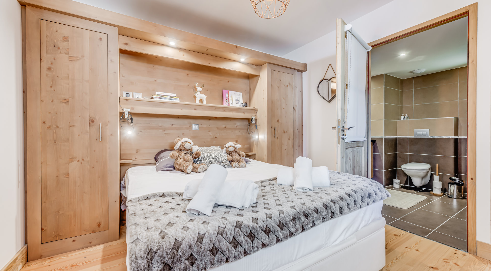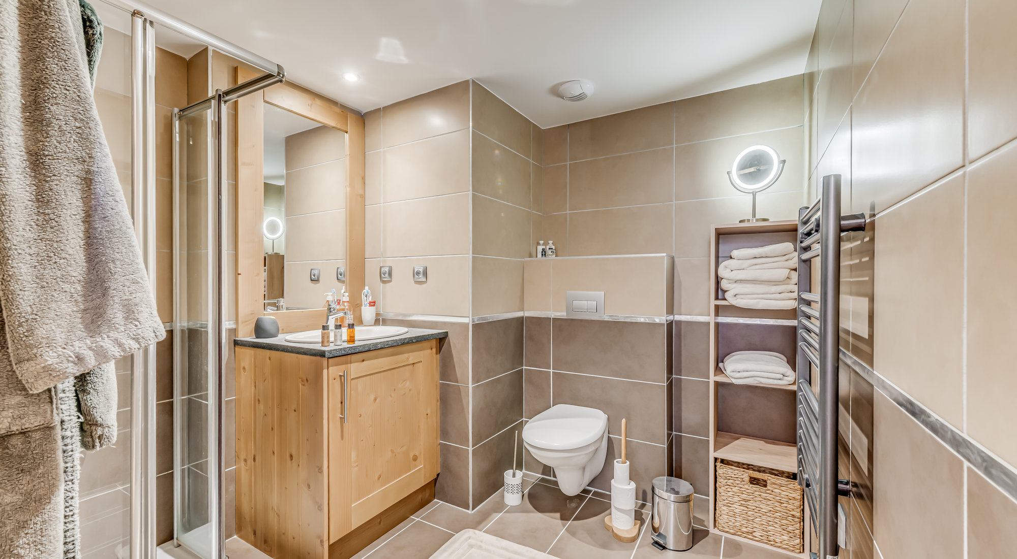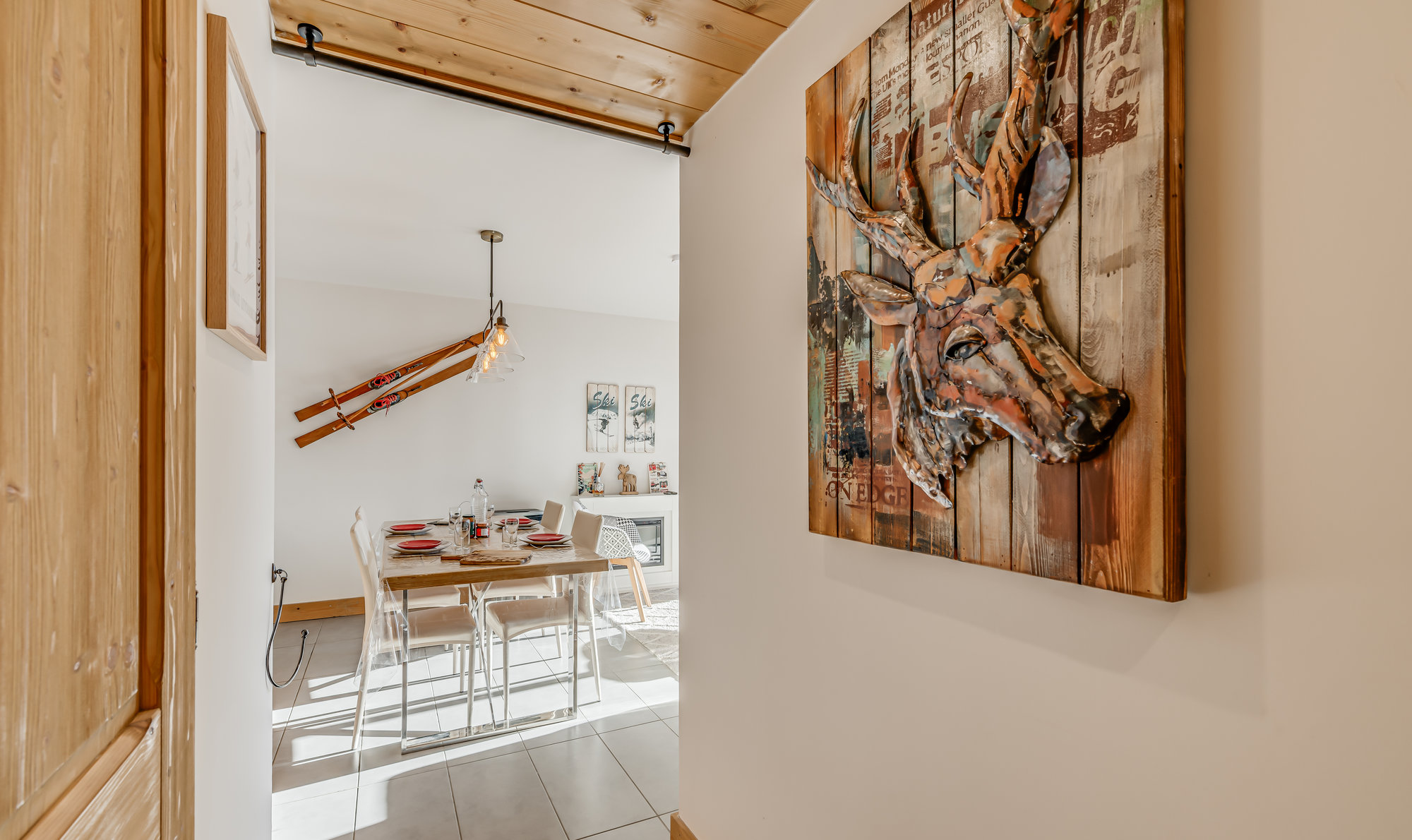 Il est composé d’un séjour avec balcon orienté Sud, d’une cuisine complètement équipée avec coin repas, de 2 chambres indépendantes, d’une salle de bains avec toilettes séparées et d’une salle de douche avec toilettes, d’une grande terrasse de 12 m2 totalement aménagée avec vue sur les montagnes et Courchevel.