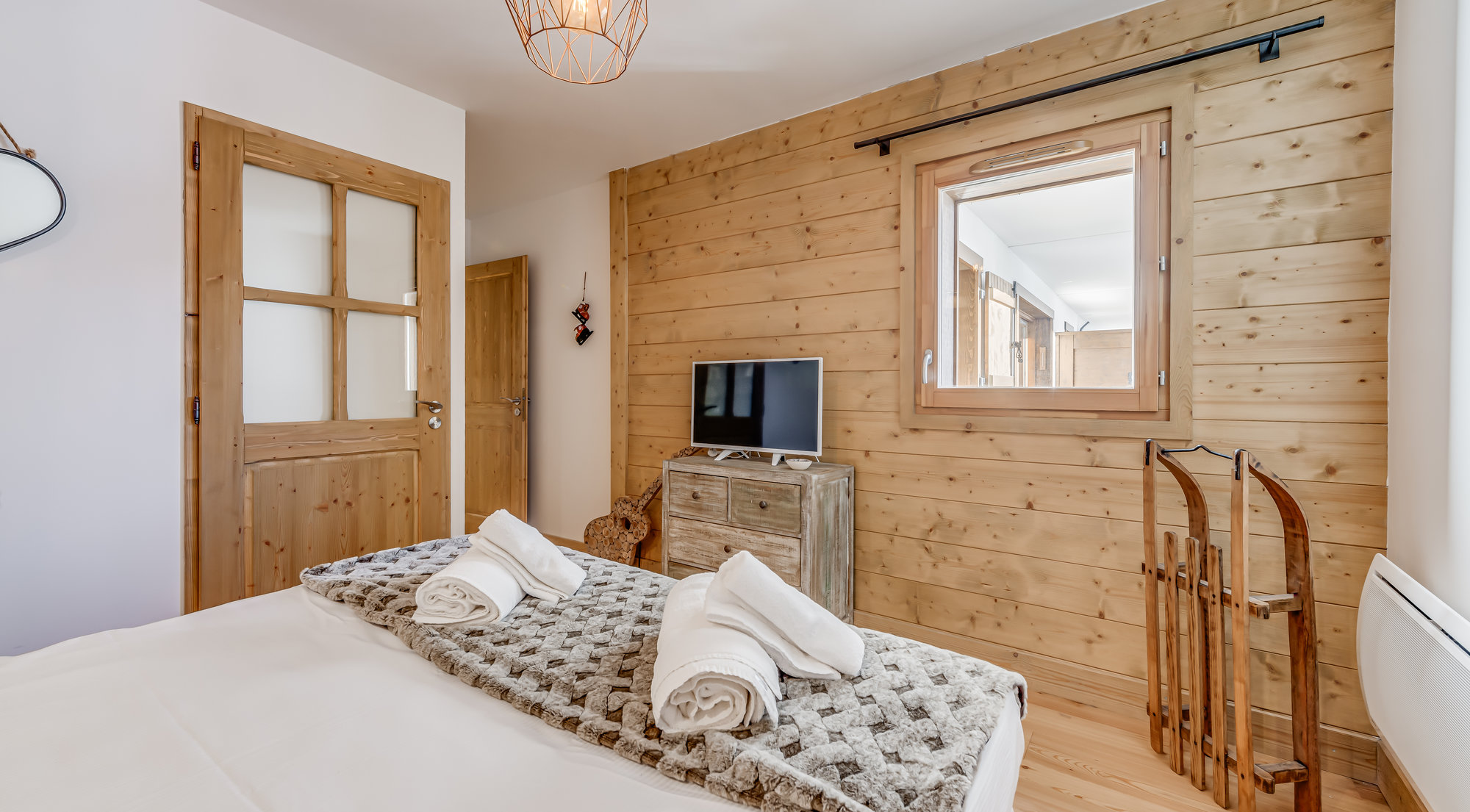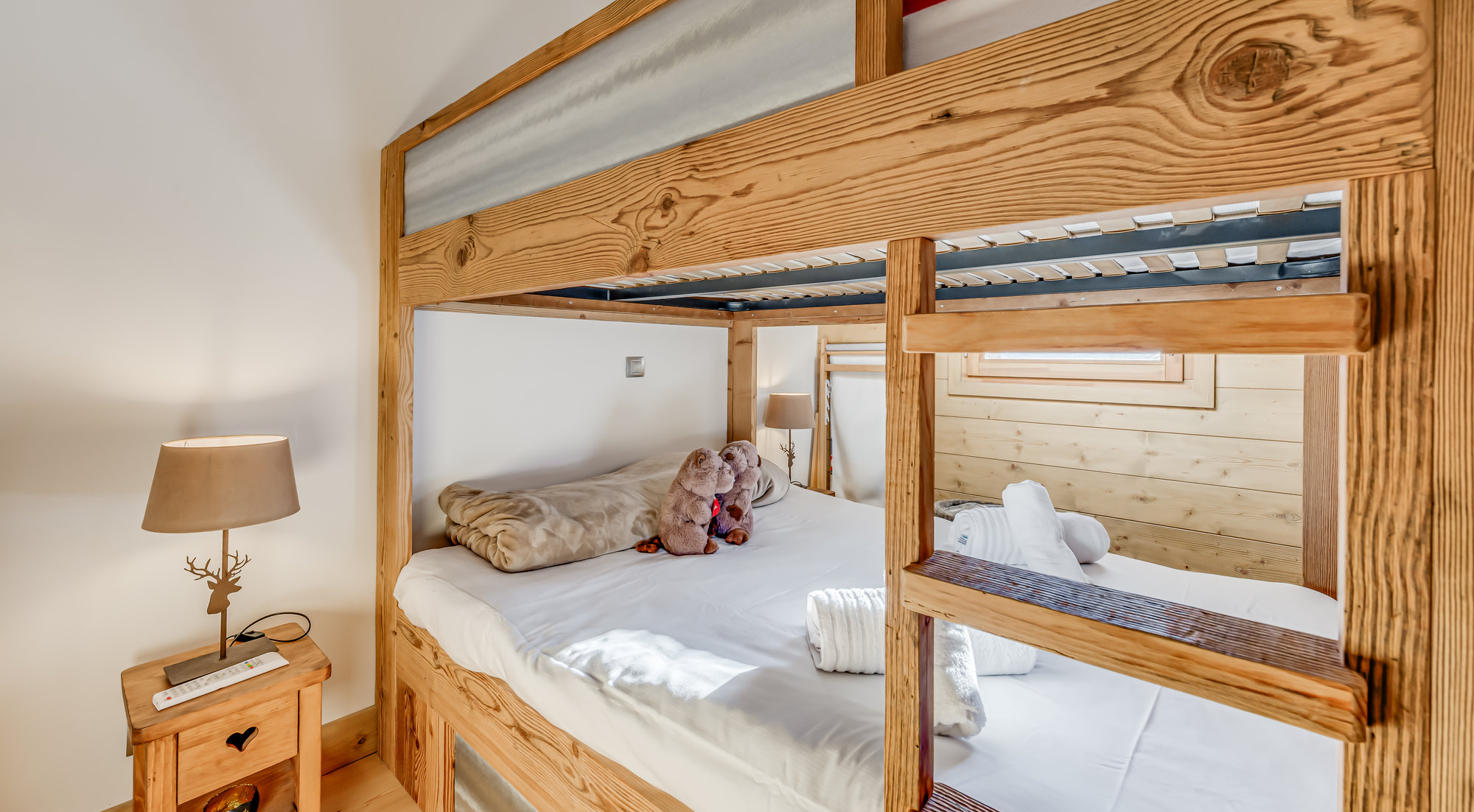 * Chambre 2 : 2 lits doubles superposés (140x90), placard de rangement et 2 TV écran plat